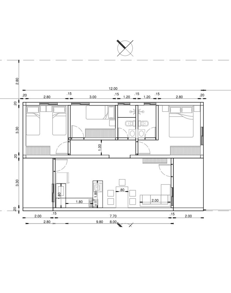 El modelo 70 m² es una excelente opción para familias que desean una casa más completa, con mayor cantidad de ambientes y espacios cómodos para vivir.
